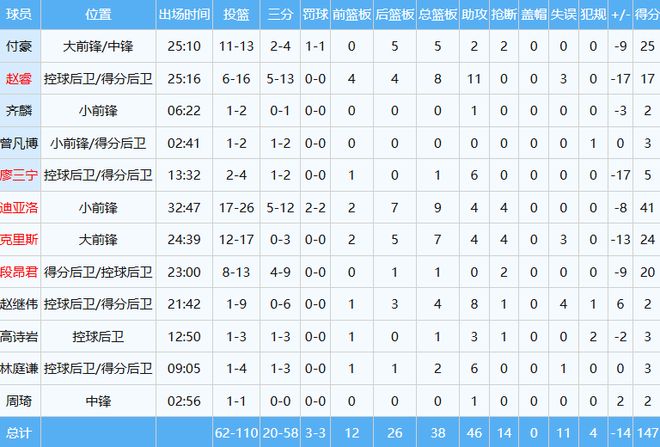 北區(qū)隊(duì)數(shù)據(jù)如下: