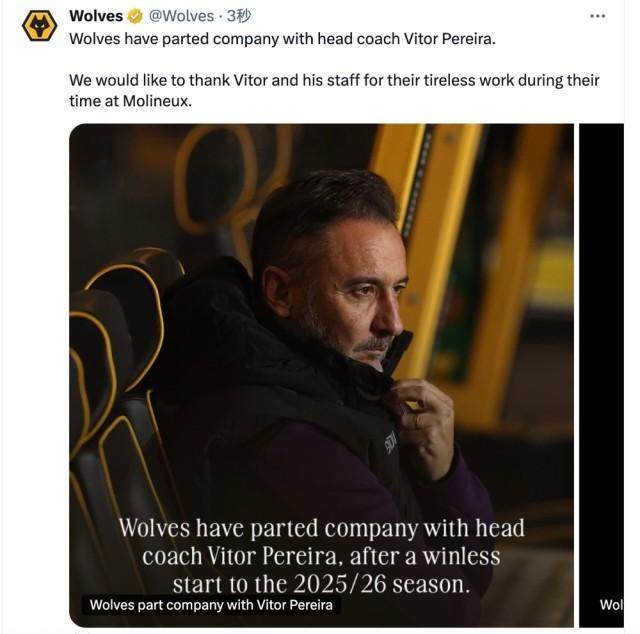 狼隊官宣主帥佩雷拉下課
